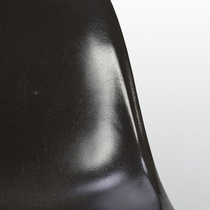 Typically found on the upholstered shells; dark tone is a rare shell colour to find in the un-upholstered fiberglass finish which makes this chair extra special. Not quite black, not quite brown or even dark grey the colour will have you guessing as more reveals itself the longer you look at it. This wonderful nature means the chair works effortlessly in whatever environment you wish to put it into, whether it be a modern dining space or a retro one; this chair will simply blend in as easily as it will stand out as the centre piece depending on what you require.