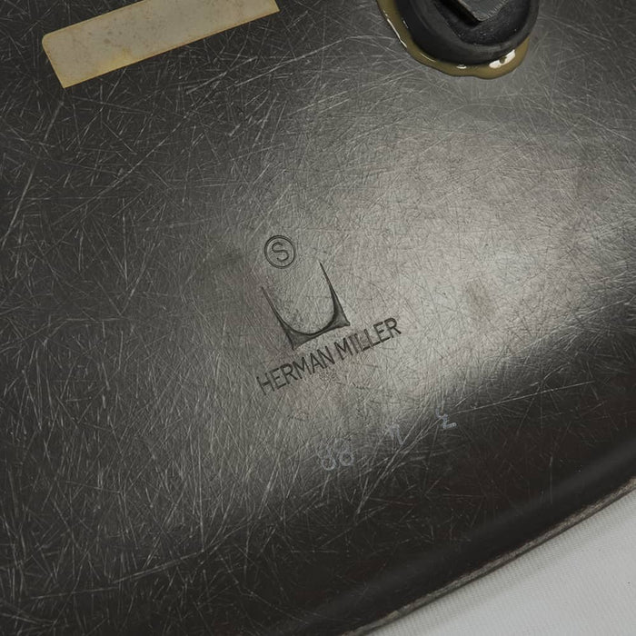 The ‘S’ within the circle indicates this shell originates from Herman Millers’ Summit Plastics factory and dates it – with its colour – as being produced between 1976-1989.