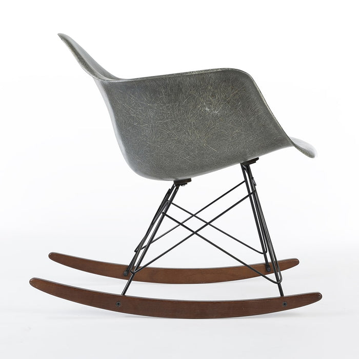 What could be better than an authentic Grey Eames Arm Shell? A beautiful all original Herman Miller RAR on a distinctive newer, used walnut RAR rocking base! The grey finish is a very popular choice and its highly ‘fibrous’ look is complimented by the dark wood of the used rocking base creating a classic chair.